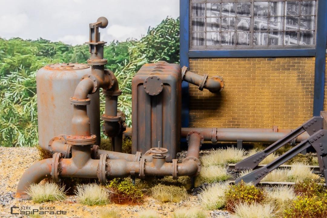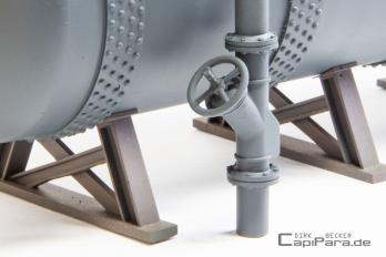 Das Rohrsystem 280 bietet flexibel einsetzbare Rohr-Bauteile mit unendlich vielen Einsatzmöglichkeiten. Die Zahl 280 bezieht sich auf den Außendurchmesser der Rohre, 280 mm entsprechen im Modell-Maßstab 1:32 also 8,75 mm Durchmesser.