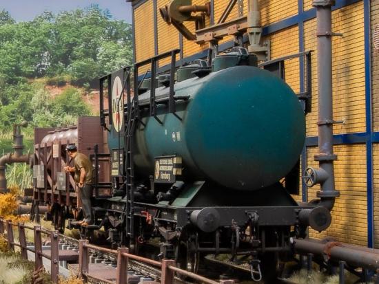 Als Motiv für die ersten beiden Segmente habe ich mir eine Ecke in Mitteldeutschland ausgesucht, konkret einen Anschluss in einem chemischen Großbetrieb. Darum nenne ich diese zwei ersten Segmente auch "Fettfleck" und "Absackung". Auf dem Fettfleck werden Kessel- und Säuretopfwagen beladen und in der Absackung werden Endprodukte, die in Säcke und Fässer verpackt sind, in G-Wagen verladen.