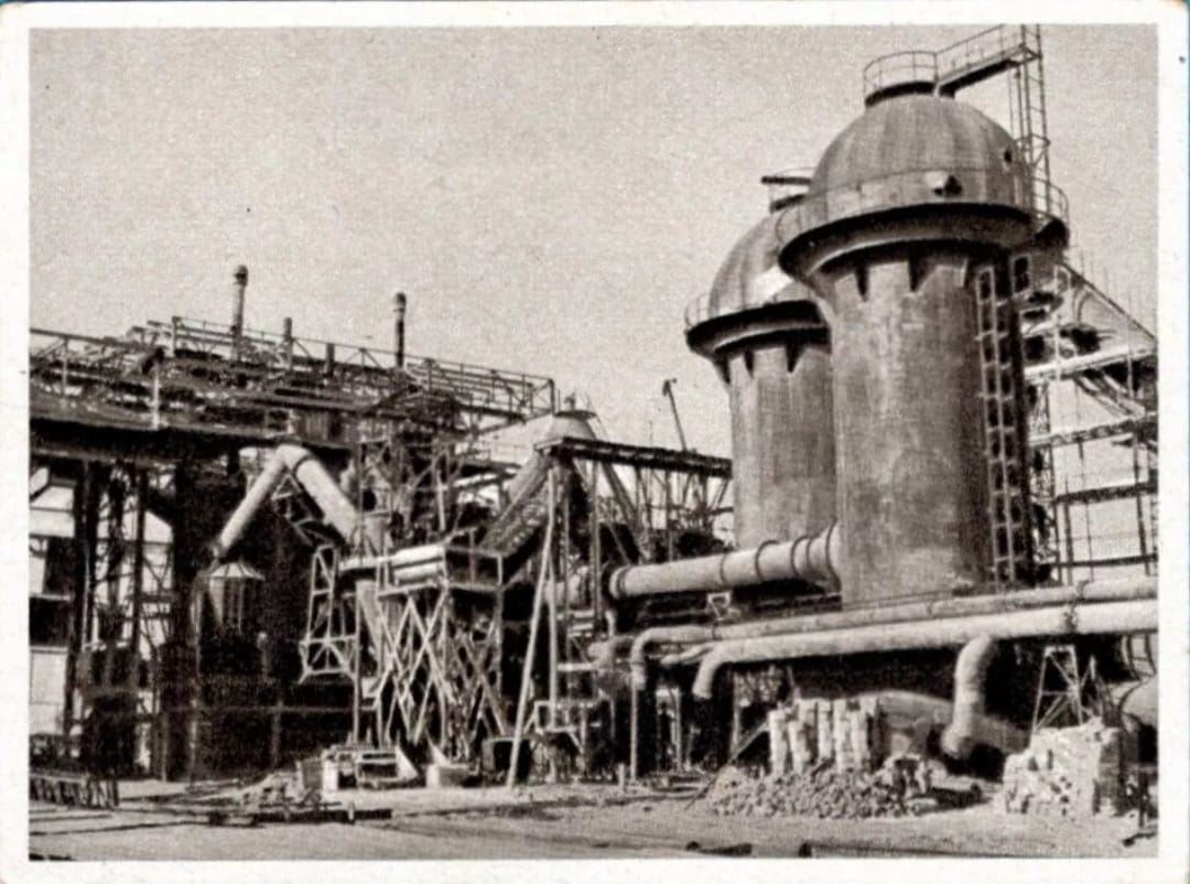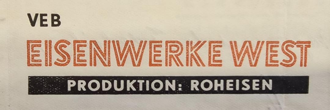 Mit dem ersten Roheisenabstich am 15.10.1951 gingen die Eisenwerke West in Betrieb. Es war die erste Anlage dieser Art weltweit. Bis 1953 entstanden weitere 9 Niederschachtöfen. In jedem dieser insgesamt zehn Öfen konnte eine Tagesleistung von 100 Tonnen Roheisen erzeugt werden, also zusammen 1000 Tonnen pro Tag.